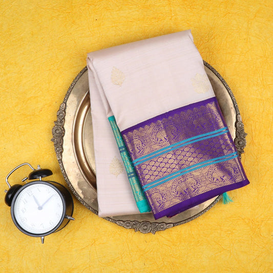 Pearl White Kanjivaram Silk Saree With Floral Jaal Design