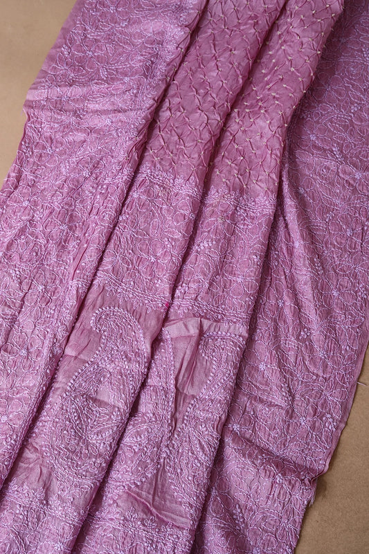 Lilac Snow Purple Bandhani Printed Tussar Silk Saree