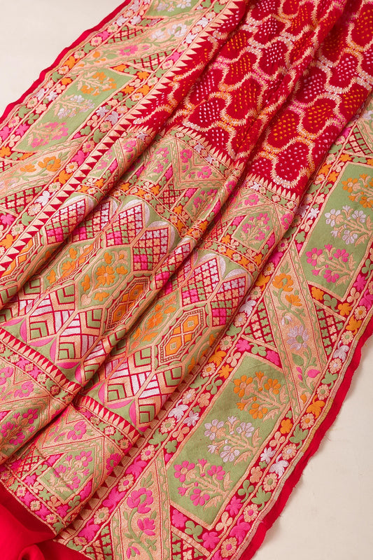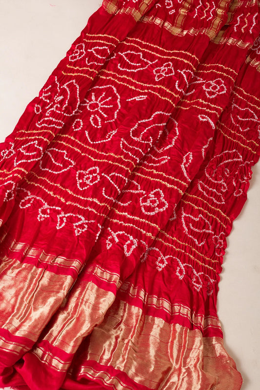 Crimson Red Bandhani Printed Silk Saree