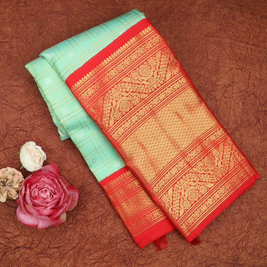 Pastel Green Kanjivaram Silk Saree With Checks Pattern