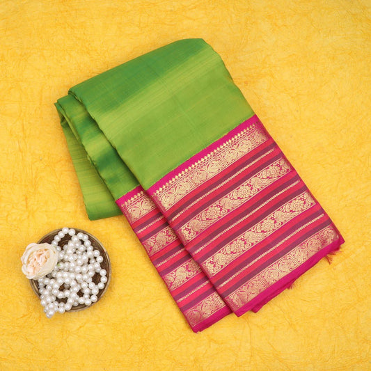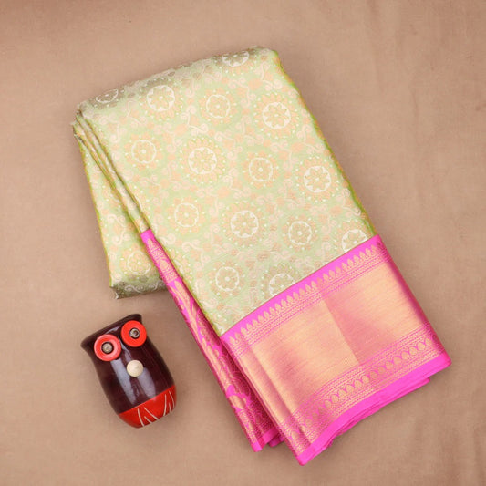 Lime Green Kanjivaram Silk Saree With Poo Chakra Motif