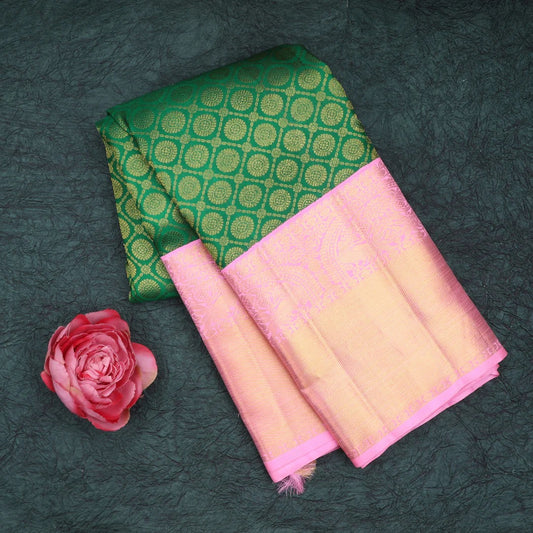 Dark Green Kanjivaram Silk Saree With Floral Buttis