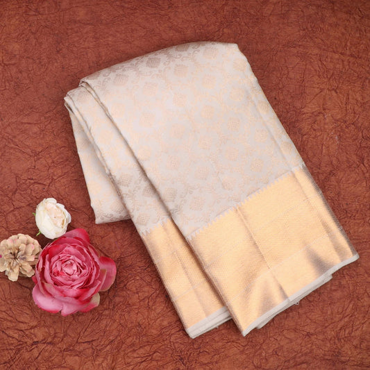 Pearl White Kanjivaram Silk Saree With Floral Jaal Design