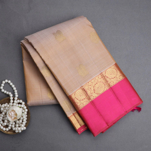 Beige Kanjivaram Silk Saree With Floral Buttas