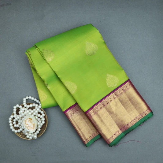 Lime Green Kanjivaram Silk Saree With Floral Buttas