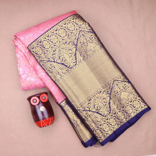 Pastel Pink Kanjivaram Silk Saree With Floral Motifs