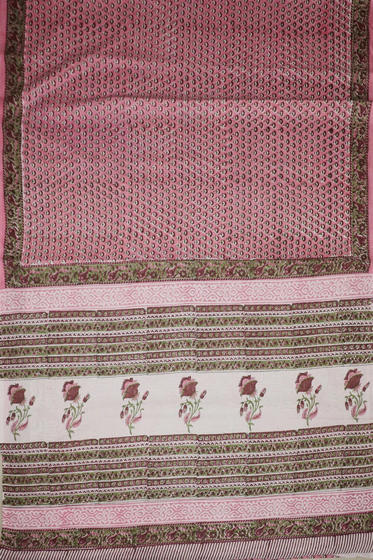 Pink with Tiny Butta's Block Printed Mul Cotton saree