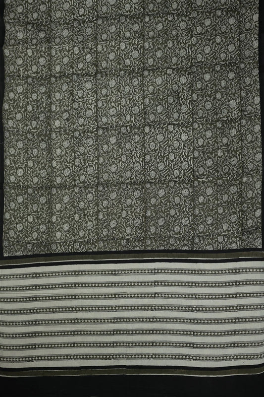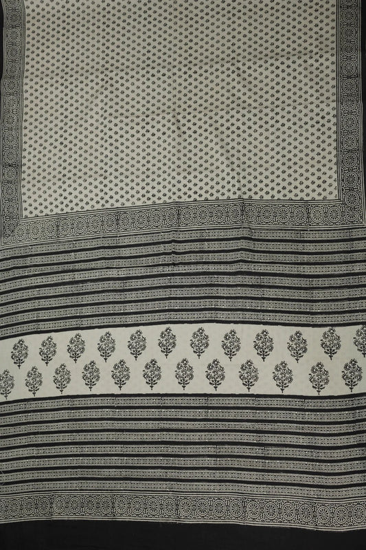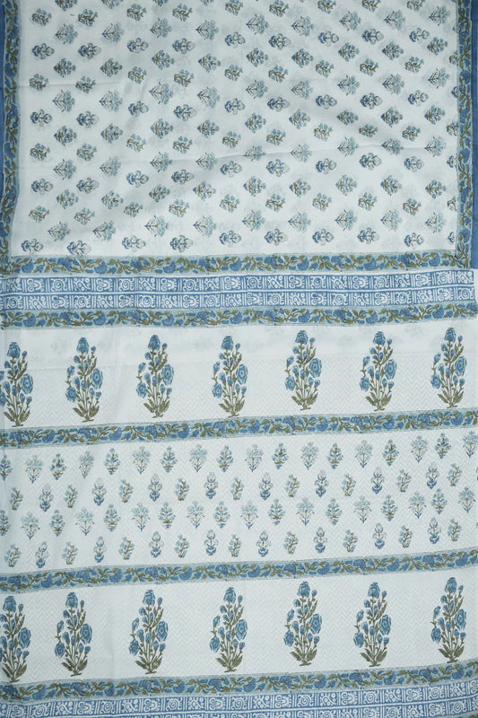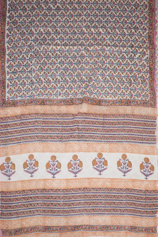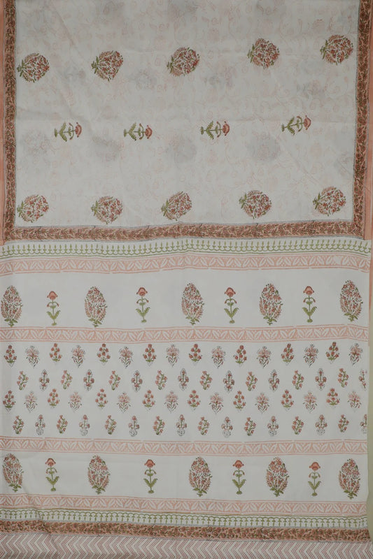 Floral Bunch Butta on Off-White Block Printed Mul Cotton Saree