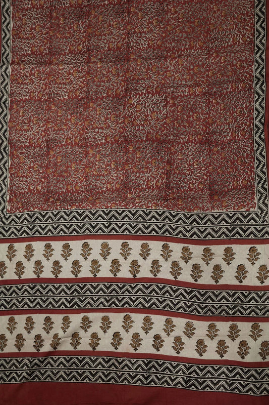 Intricate Floral on Cream Block Printed Mul Cotton saree