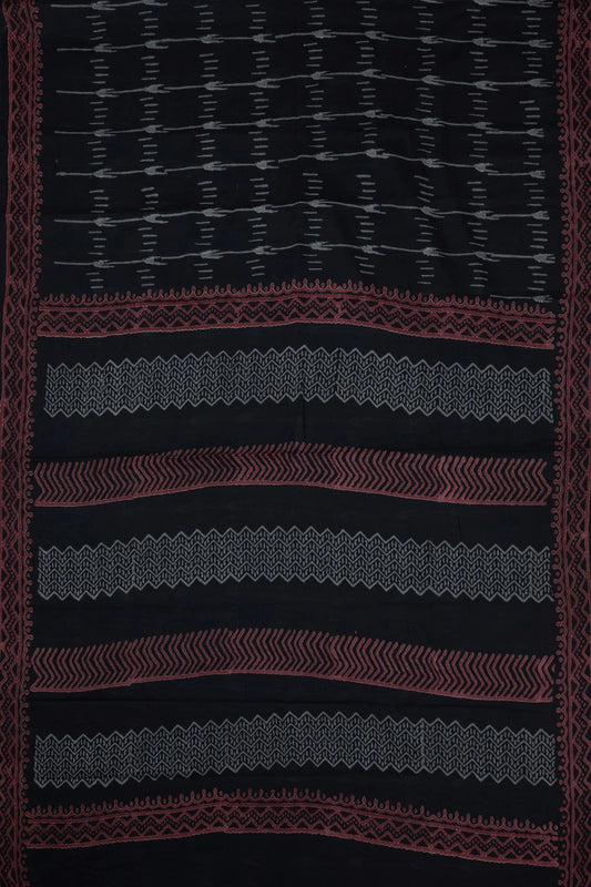 Ash Grey Mul Cotton Saree with Ikat Blouse