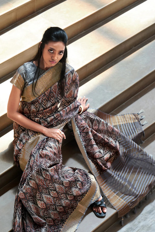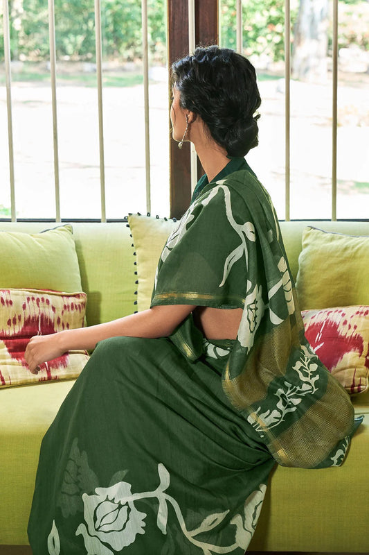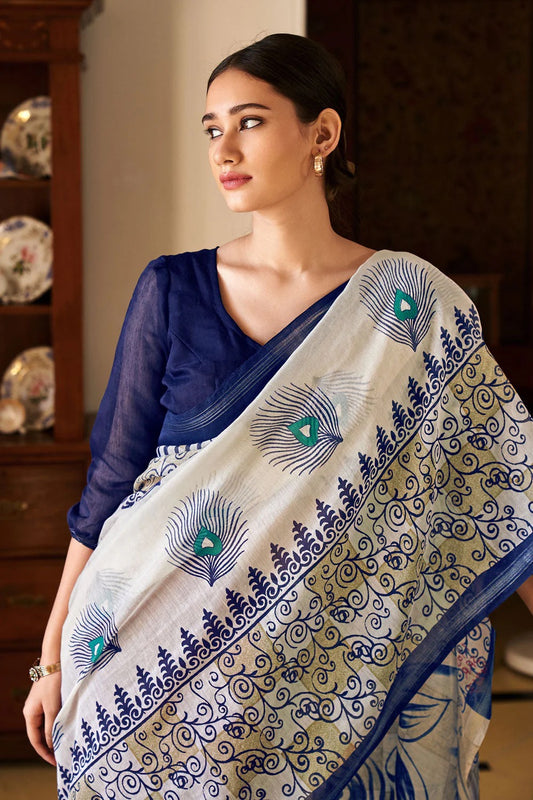 FROST CREAM BATIK PRINT PURE LINEN SAREE