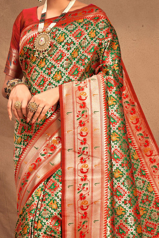 Green Tissue Kanjivaram Silk Saree With Bird And Pattern