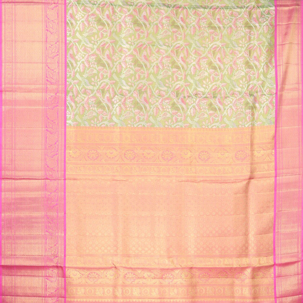 Green Tissue Kanjivaram Silk Saree With Bird And Pattern