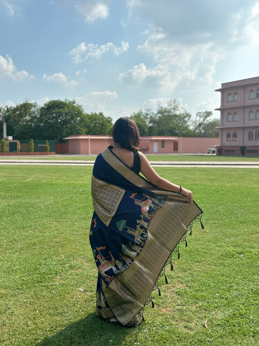 Baluchari Silk Blue Camel Saree