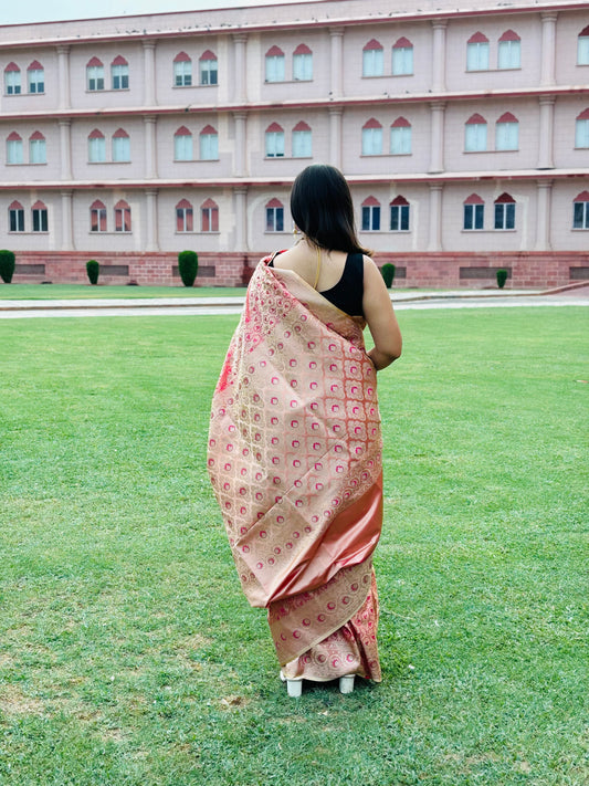 Light Pink Pure Silk Banarasi Tanchoi Saree