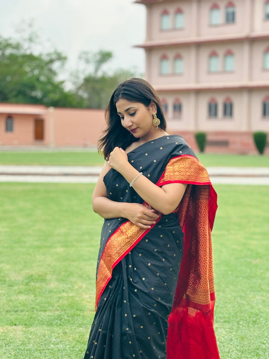 Black with Red Border Pure Kanchipuram Saree