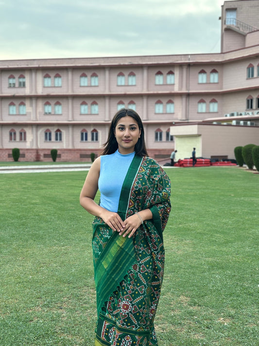 RAJKOT PATOLA DUPATTA | SEMI DOUBLE WEAVE DUPATTA | DARK GREEN