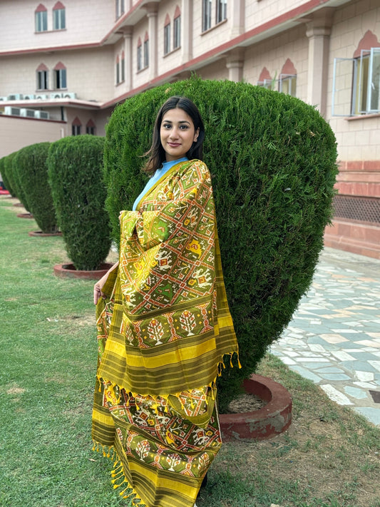 RAJKOT PATOLA DUPATTA | SEMI DOUBLE WEAVE DUPATTA | MUSTARD