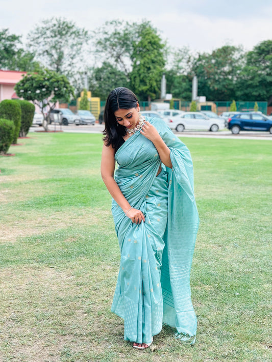 Turquoise Handspun Handwoven Saree