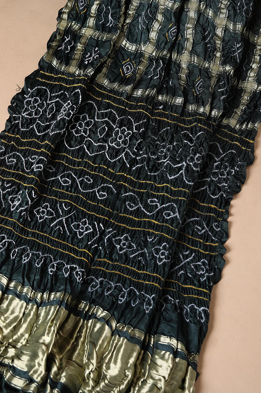 Green Shaded Bandhani Printed Gajji Silk Saree