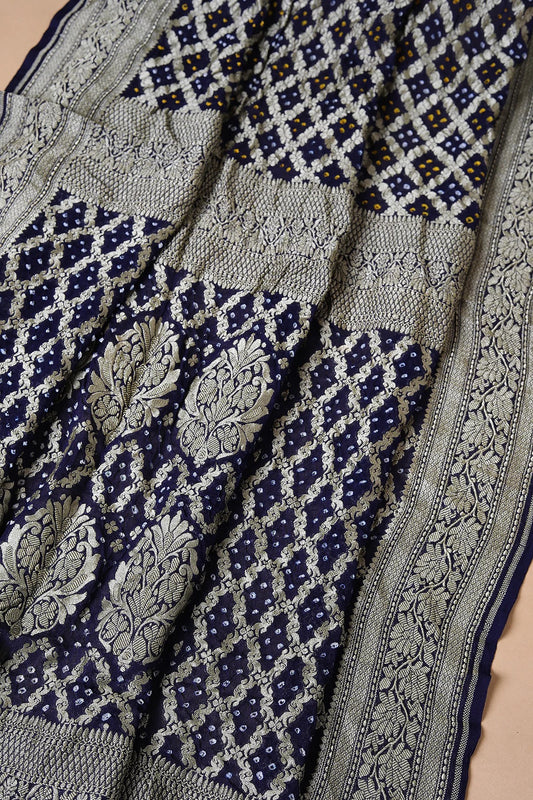 Dark Navy Blue Bandhani Printed Georgette Saree