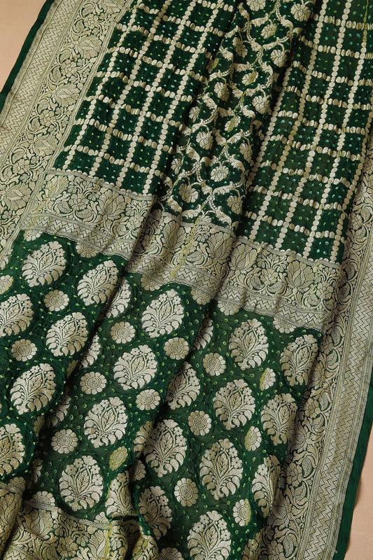 British Racing Green Bandhani Printed Georgette Saree
