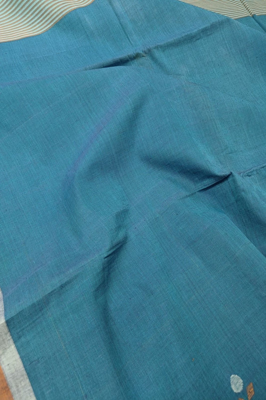 Cerulean Blue Handspun Handwoven Saree