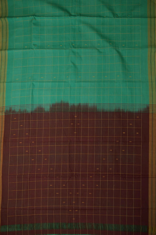 Dual Shaded Green & Grey Handspun Handwoven Saree