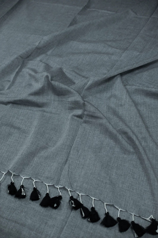 Ash Grey Mul Cotton Saree with Ikat Blouse