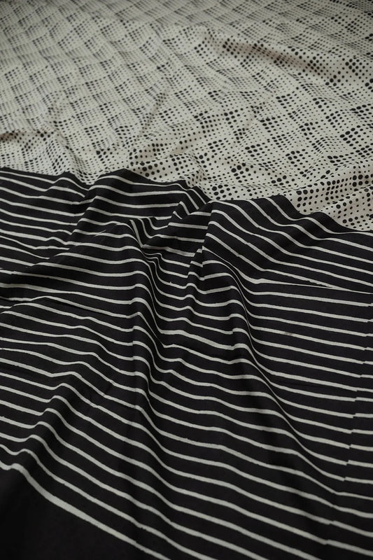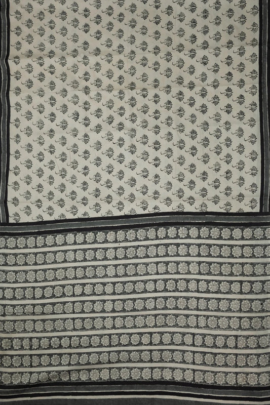 Dotted on Cream Block Printed Mul Cotton saree