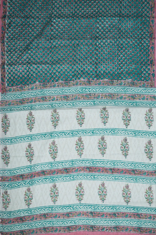 Pink Florets on Blue Sanganeri Mul Cotton saree